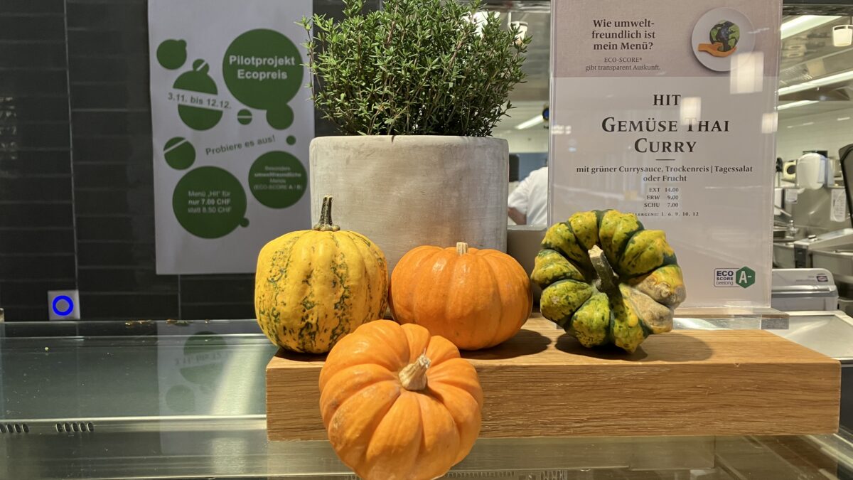 Die Idee war simpel: Die klimafreundliche, vegetarisch-vegane Menülinie HIT wurde um 1.50 CHF vergünstigt. Gleichzeitig führten wir den ECO-SCORE® ein – ein Ampelsystem von A+ bis E, das auf einen Blick zeigt, wie umweltfreundlich ein Gericht ist. Begleitet wurde das Ganze durch Unterrichtseinheiten im Fach Wirtschaft, Arbeit, Haushalt (WAH), in denen unsere Schüler:innen lernten, was Ernährung mit Umwelt und Klima zu tun hat.